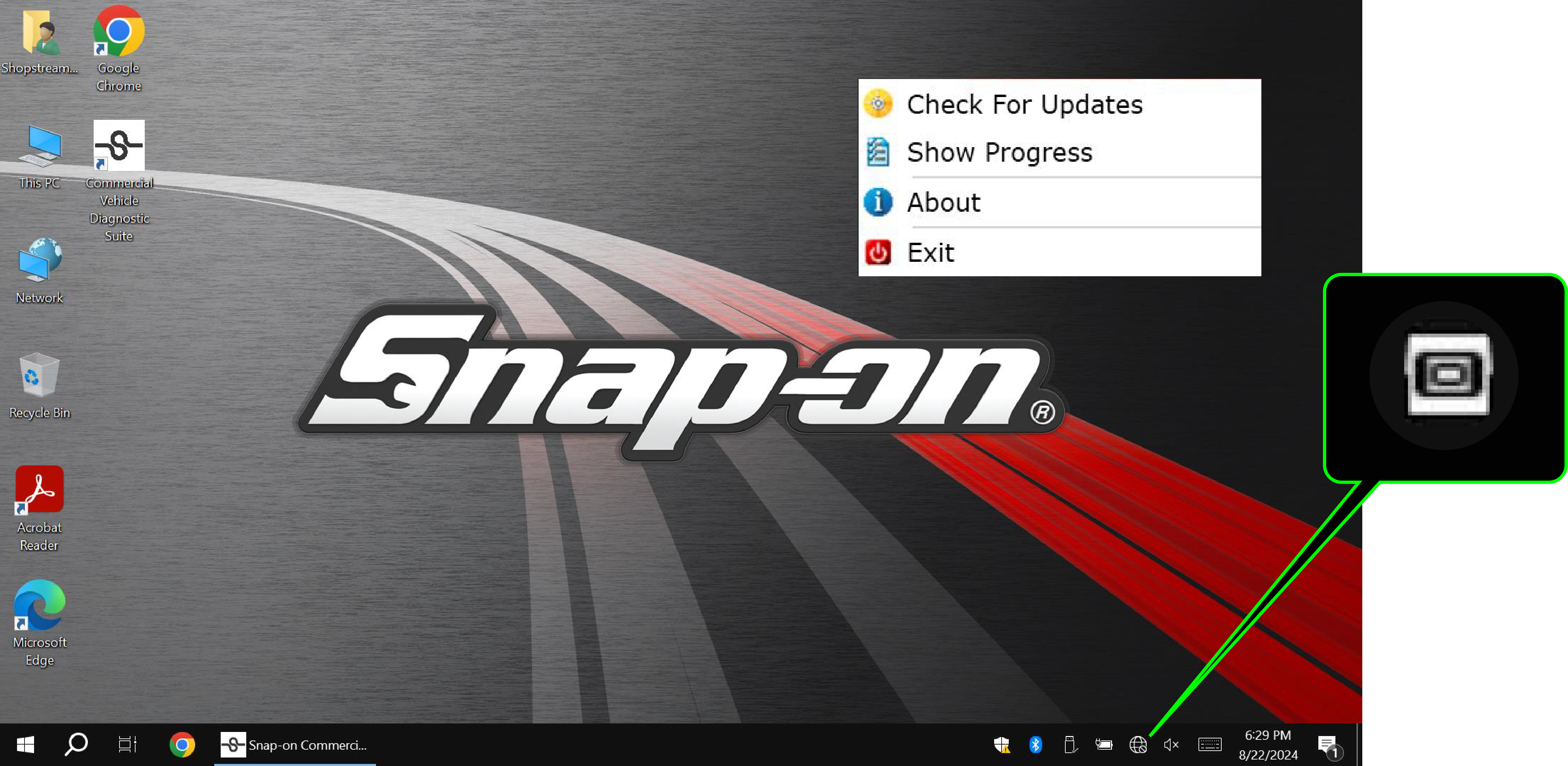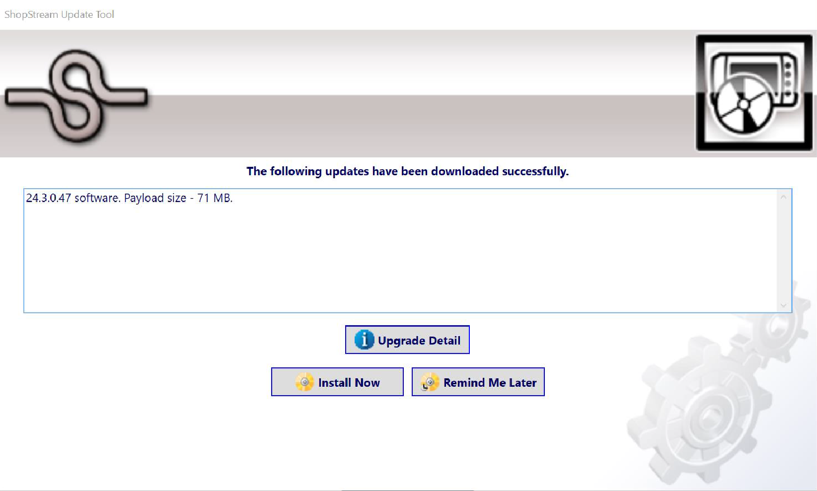 | 2. | Click the Software Update icon in the taskbar, or select ShopStream Update Tool >Check For Updates from the system menu. |