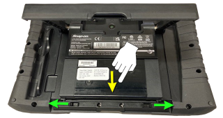 | 4. | Slide the two battery locks inward, to lock the battery in place. |