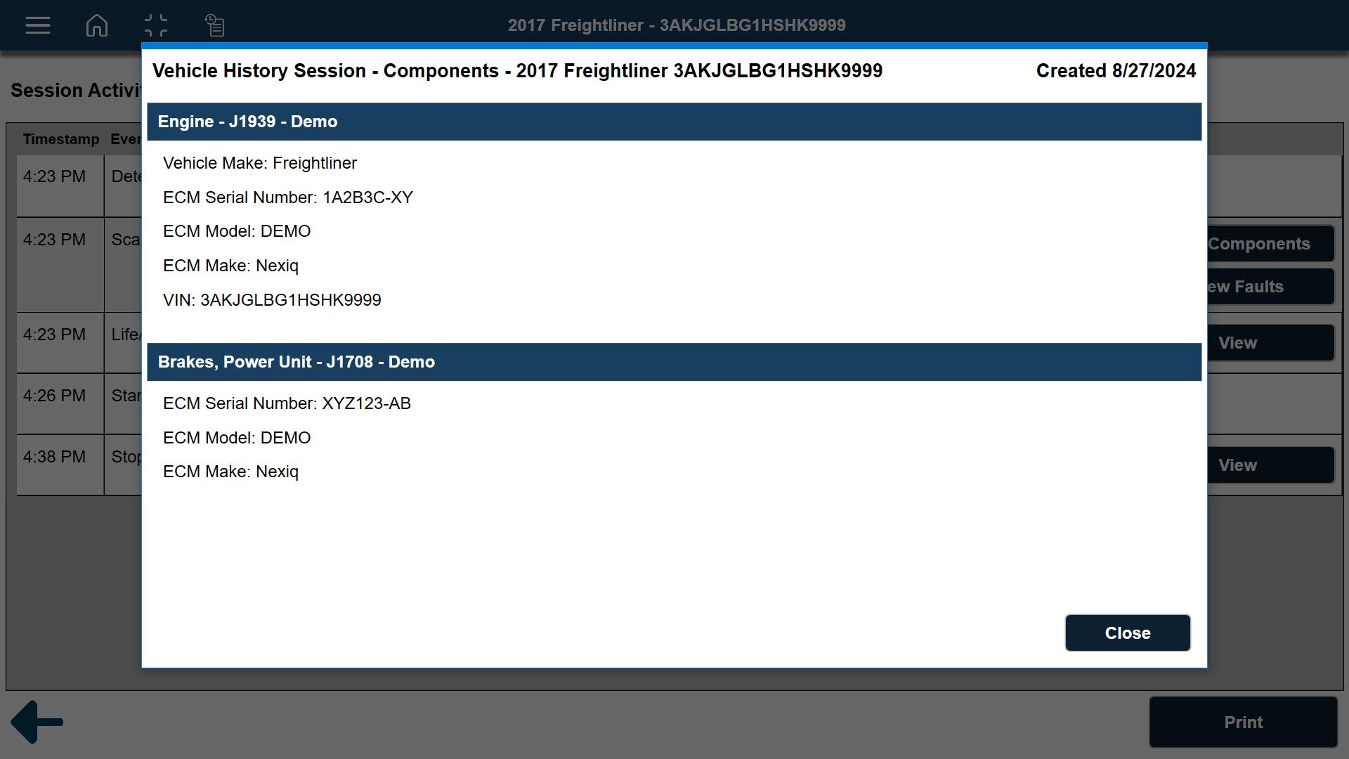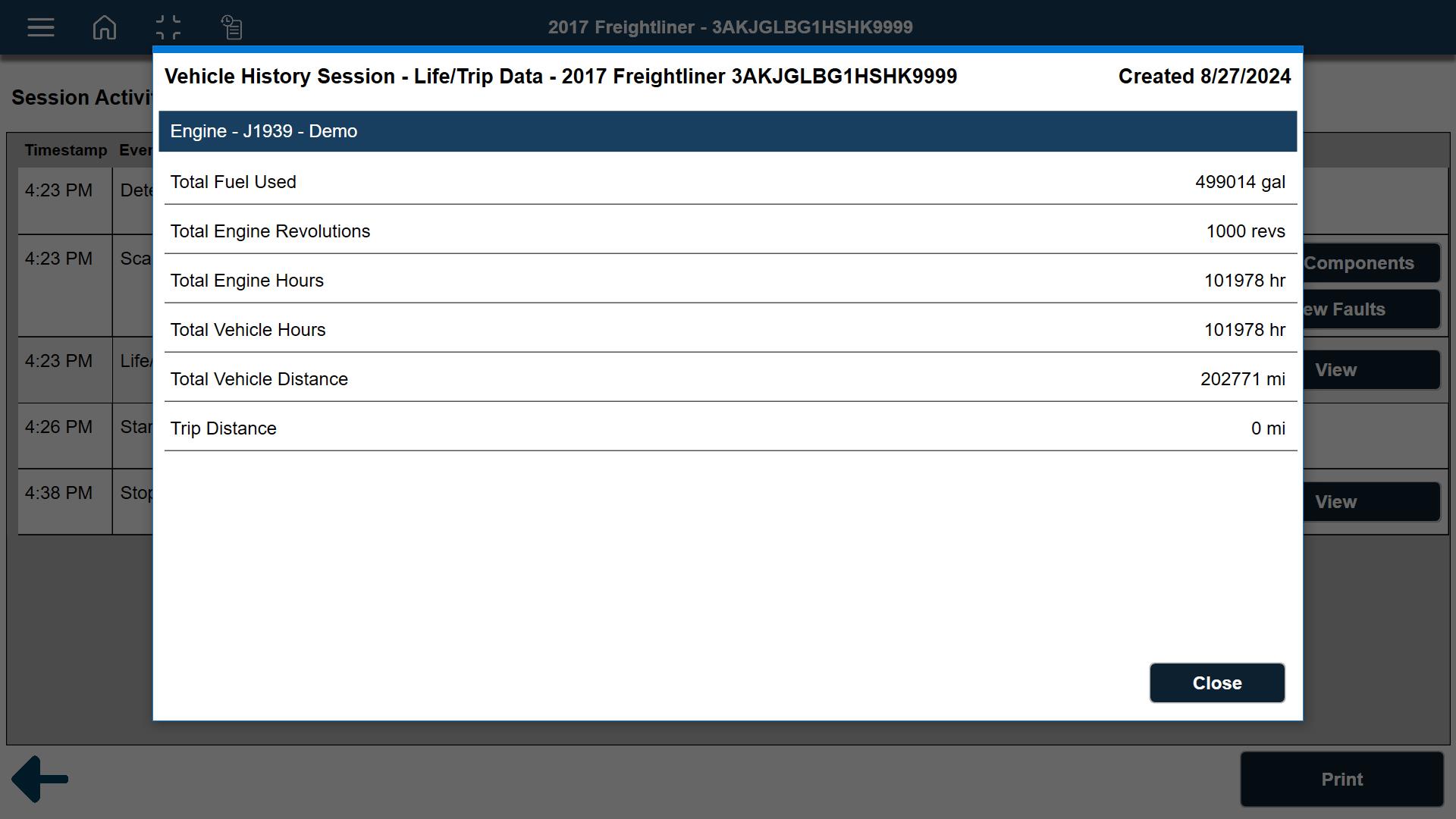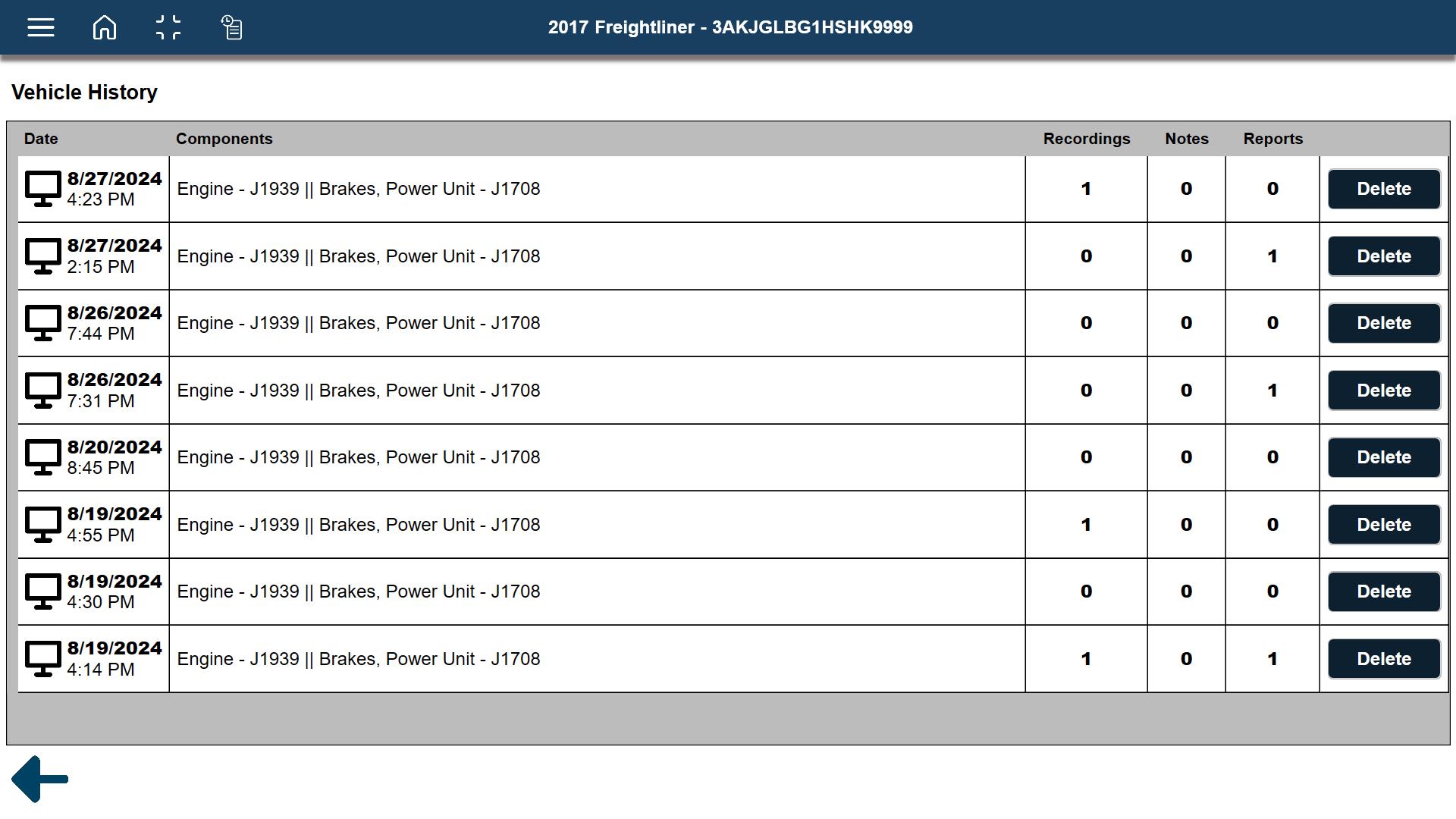 Each session activity log includes date and timestamps of the activity performed and quick links to the data saved with each session. Examples of data provided are shown below.