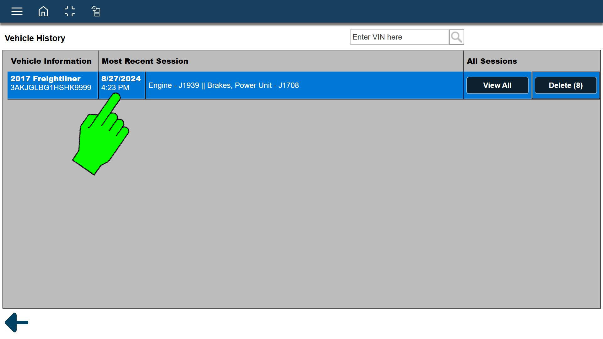Clicking on Select All opens a list of all the associated sessions, with the most recent at the top. Click on a session to open it.