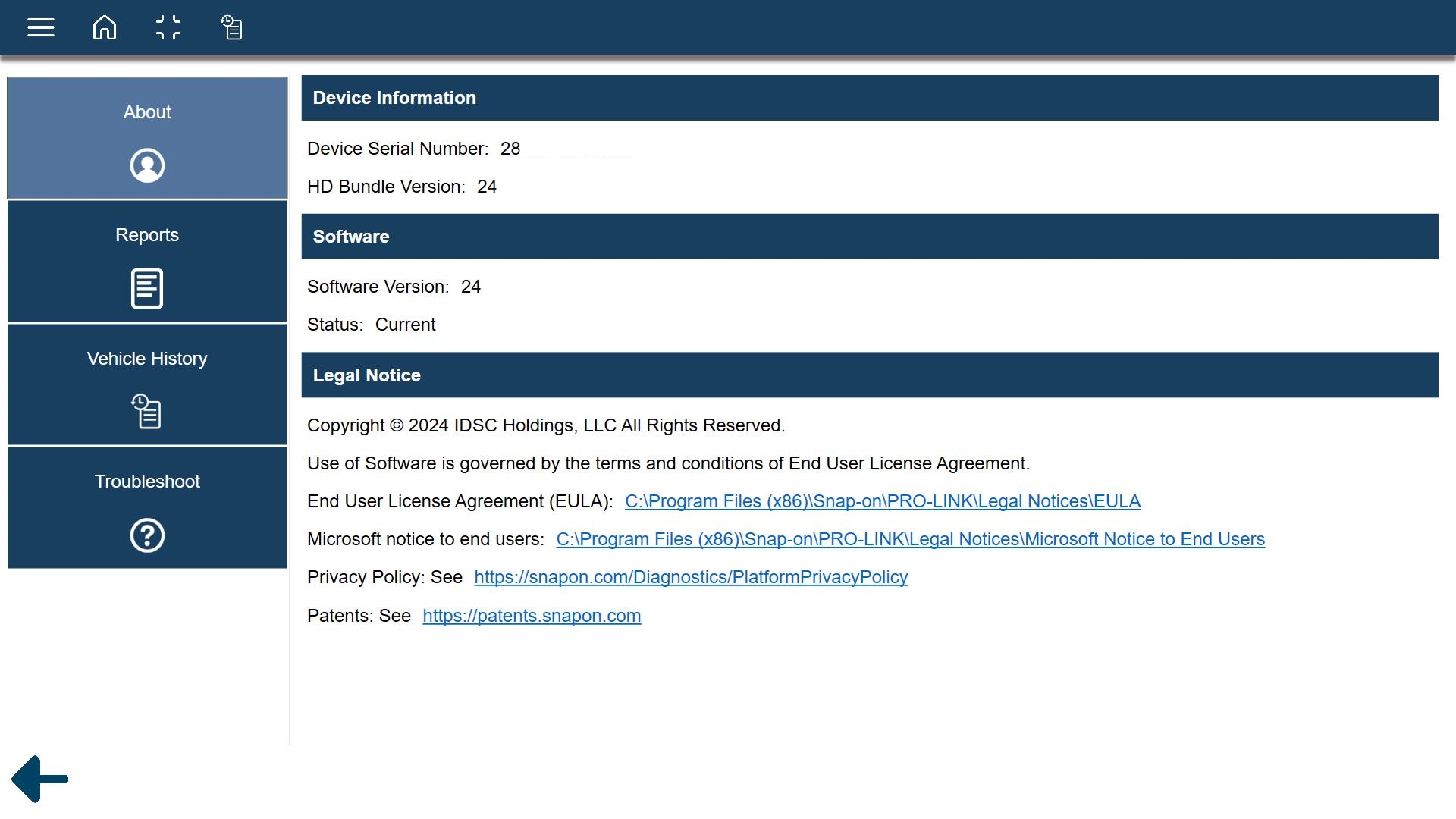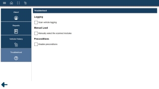| ● | Logging - (Scan vehicle logging) The Logging utility is used by Snap‐on Technical Support to create a log file to assist in resolving issues encountered during an active vehicle session. The log is not visible to the user. However, it provides information useful to the Technical Support team when solving issues. |