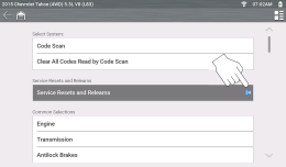After identifying the vehicle, select the Service Resets and Relearns menu option from the system menu.