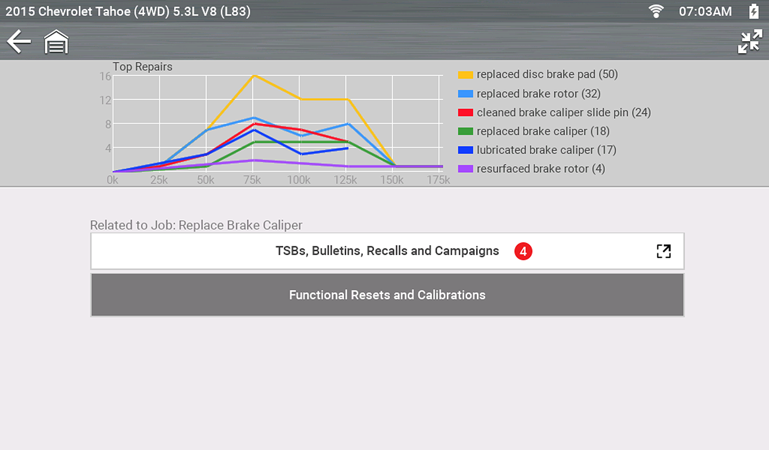 | ● | Top Repairs Graph - Shows the top repairs related to the selected Reset/Relearn |