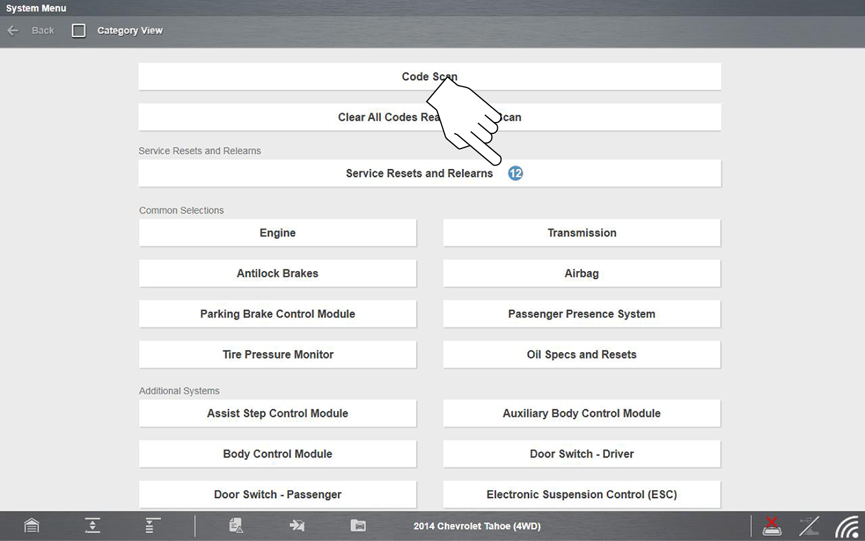 Home Screen: [Typical] Scanner (Vehicle Identification) > (Vehicle System Menu) > (Service Resets and Relearns)