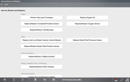 | ● | Categorized (quick-access) menu to the supported vehicle specific resets/relearns (functional tests) |