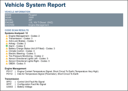 1. Double-click the code scan .XML file from the file list to open the Vehicle System Report in the Code Scan Viewer.