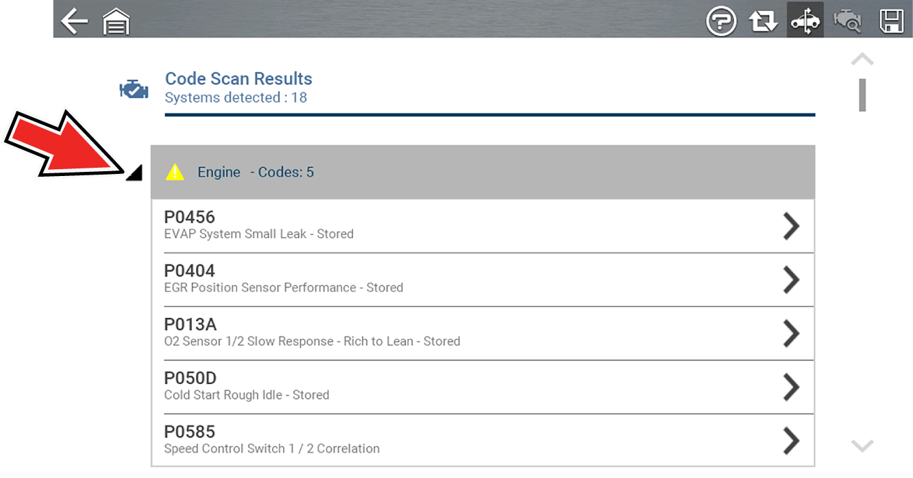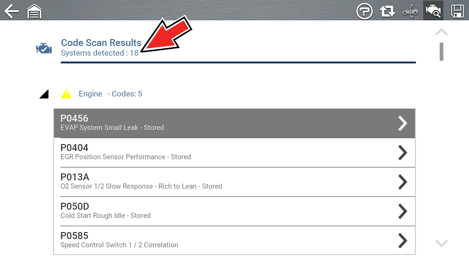 Code Scan runs an active scan of vehicle control modules, and then displays the results.