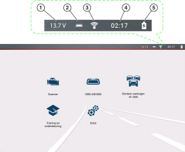 | ● | de datakabel is aangesloten op een voertuig (met 12 VDC op de datalinkconnector (DLC)) |