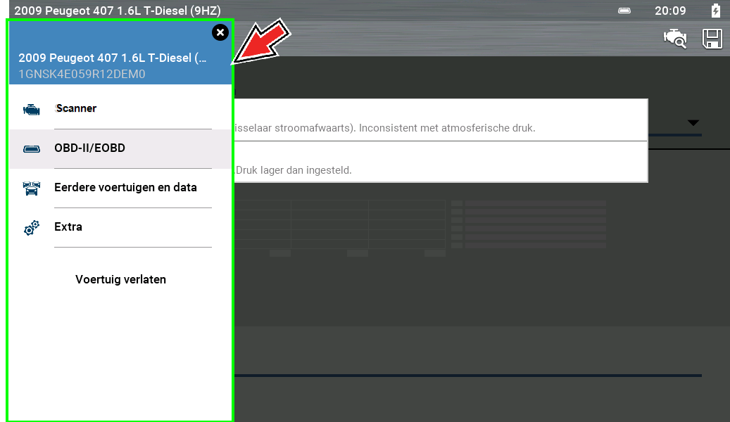 Het diagnose-instrument gaat automatisch aan wanneer: