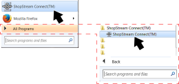 Select ShopStream Connect directly from the Start Menu (Left Figure) programs if available, or |