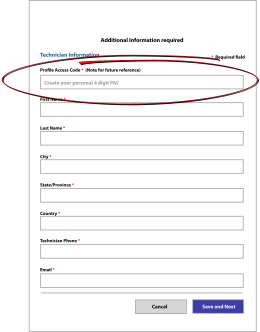 Note: You can change this code at any time from the Account Information tab in your Technican Profile (see Adding/Changing a PAC in your Technician Profile below).