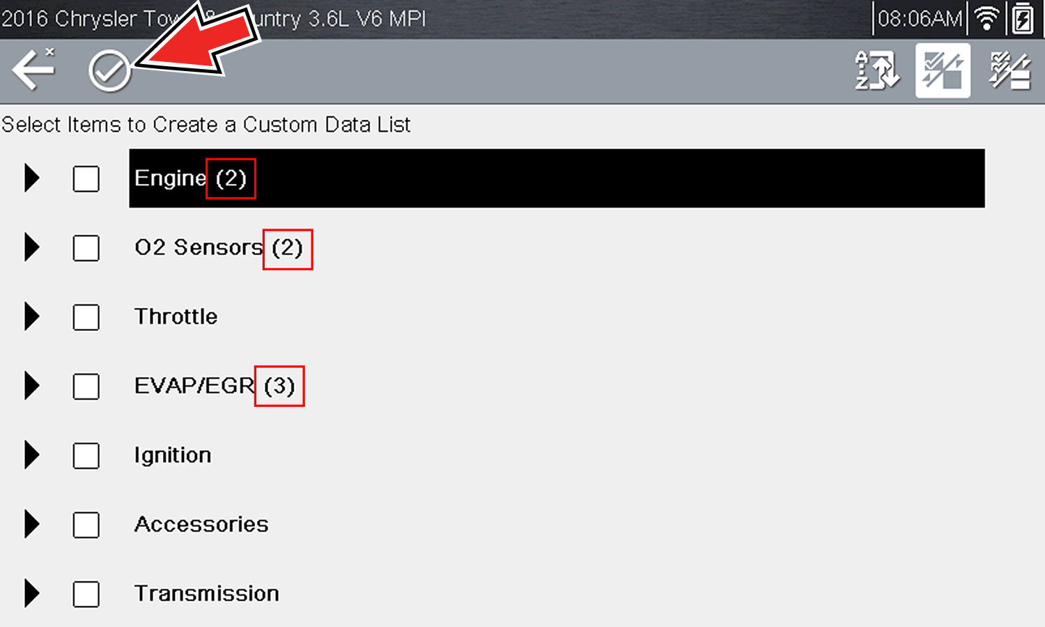 Some vehicles may support a cross-system custom PID list, which allows you to choose multiple PIDs from across available systems to create a custom list.