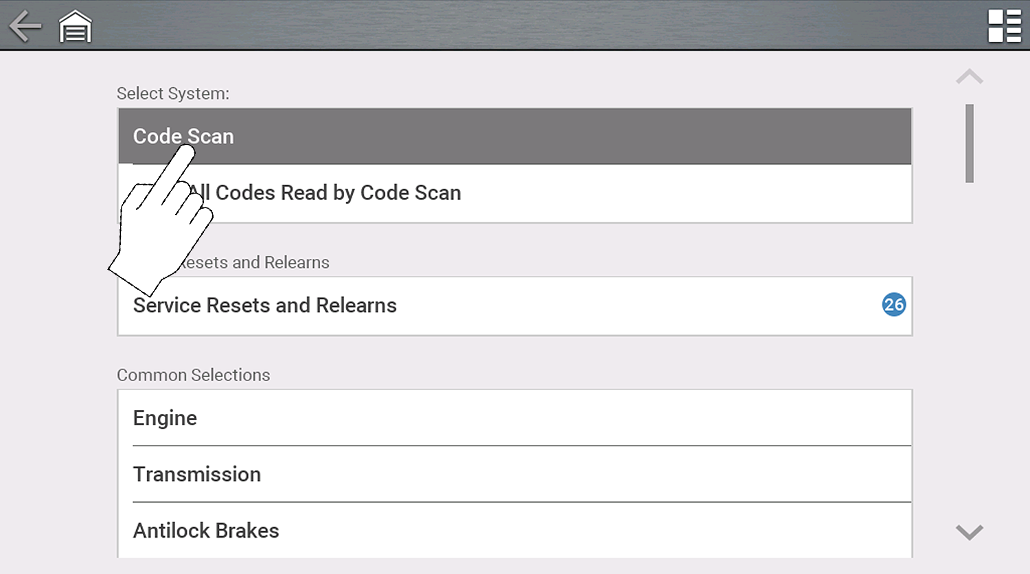 Code Scan allows you to quickly scan all supported vehicle control modules for codes and monitor readiness.