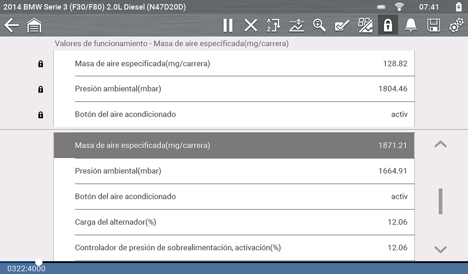 Al minimizar la cantidad de PID que se muestran, puede enfocarse en parámetros de datos específicos y tener una frecuencia de actualización más rápida.