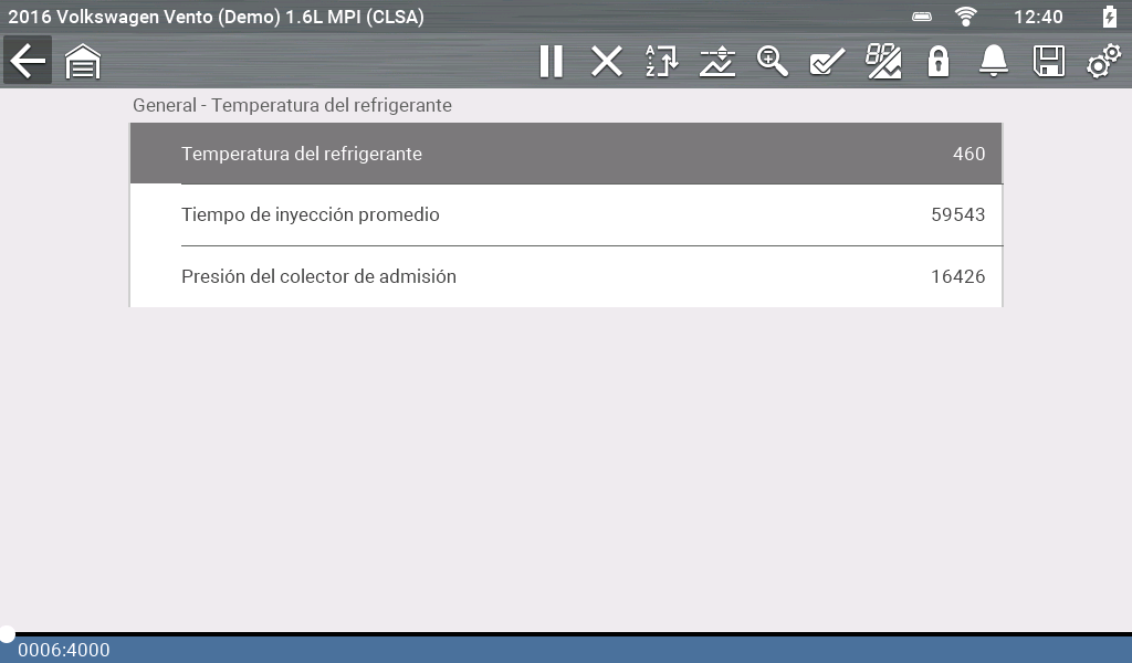 | ● | La recopilación de datos se pausa por poco tiempo mientras el escáner capta un breve registro de los datos del PID (antes y después del evento de activación) y lo guarda como un archivo de datos. |