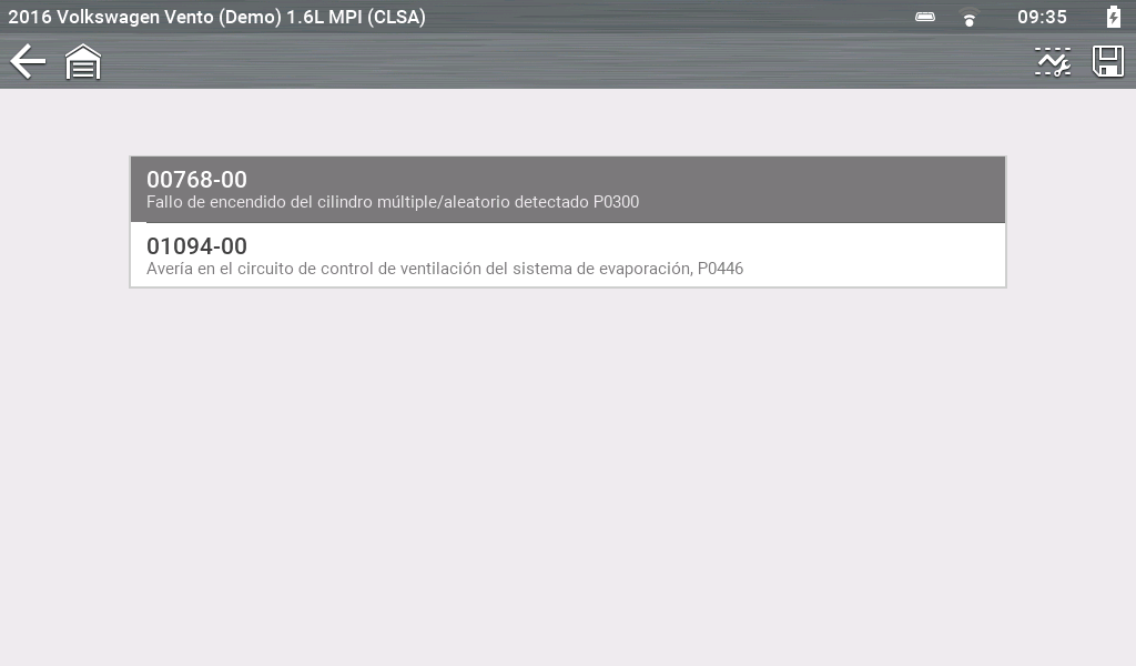 (Escáner) en la pantalla de inicio > Identify the Vehicle > Select a System > Select Codes Menu / View Codes (Identificar el vehículo > Seleccionar un sistema > Seleccionar el menú de códigos/Ver códigos [u opción correspondiente]).