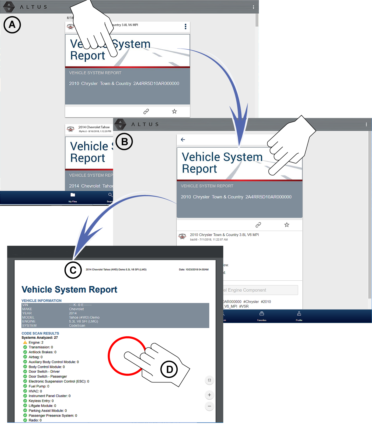 Busque el informe del sistema del vehículo que desea imprimir y presione este (Figure - A) para abrir la tarjeta de detalles del informe. |