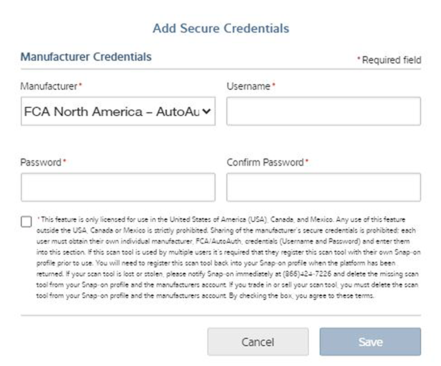 Paso 3: agregue las credenciales de OEM al perfil técnico de Snap-on