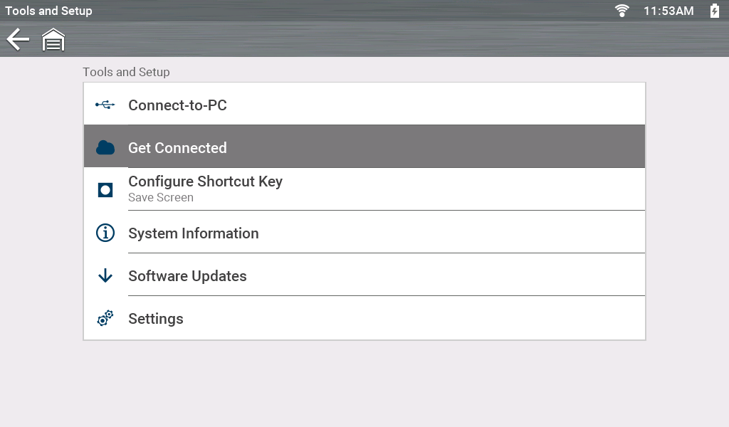 This screen displays the diagnostic tool Serial Number, PIN and Code, that are used to link your tool to your Snap-on Technician Profile (which allows you to use other apps like the Snap-on Cloud and Security Link).