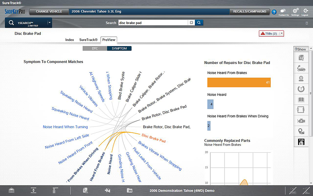 | ● | Top Repair / Procedures Graph - graphical display of the specific parts and procedures most frequently used to fix the selected code or symptom. |