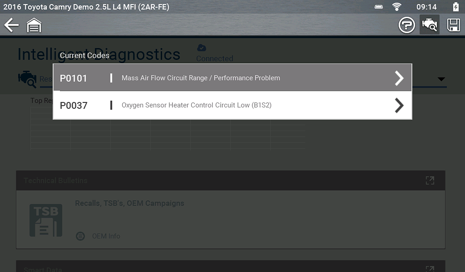 Intelligent Diagnostics may be available for a selected code from the Display Codes screen .