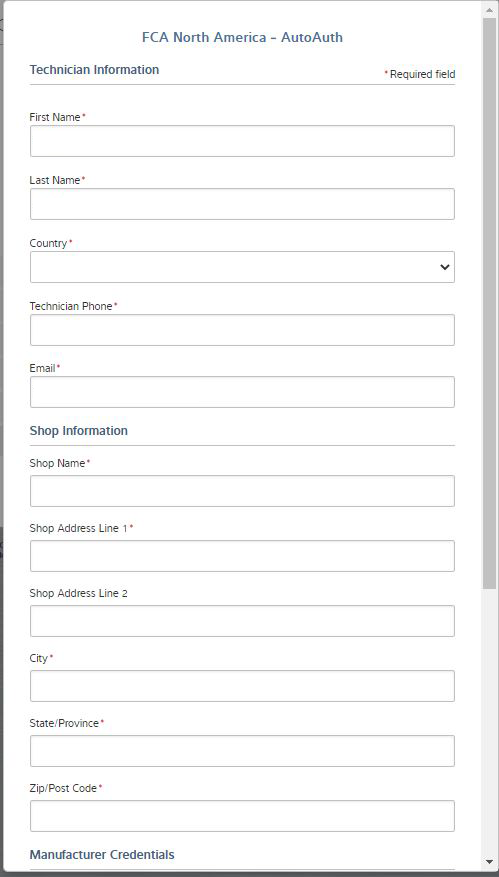 Enter the device information: (See the Get Connected information in your diagnostic tool)