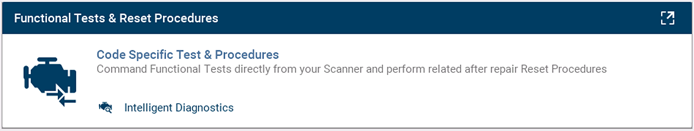 Functional Tests and Reset Procedures provides access to supported code related bi-directional tests (to verify component operation) and reset procedures (to complete the repair).