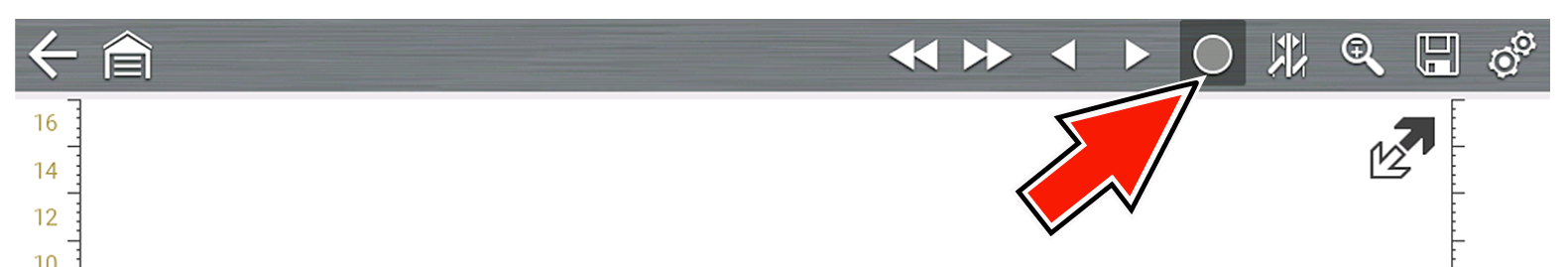 The Lab Scope and Graphing Multimeter have the capability to capture, store and playback data (test signals) utilizing internal buffer storage memory. When a test function is selected (e.g. Lab Scope > DC Volts), the data is automatically stored in buffer memory, until the Pause icon is selected.