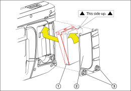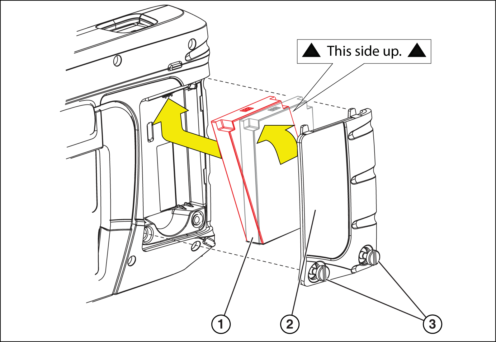 | 3. | Position the battery pack (packed separately in kit box) as shown below with the arrows facing up. |