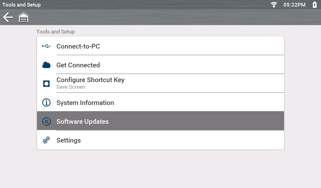 These instructions are for diagnostic tools that HAVE the built-in Software Update feature. If you do not have this feature, see ShopStream Connect for information on installing software updates, or contact your Snap-on representative.
