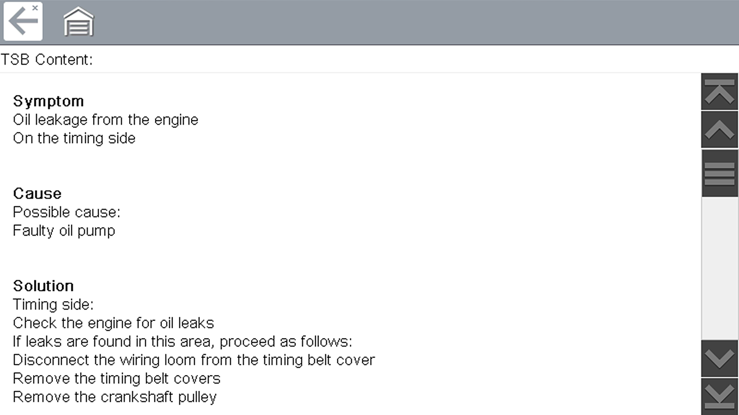 Select the desired TSB. The examples shown below are of a typical TSB, describing the