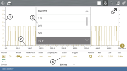 Changes the dropdown vertical scale menu selections to ##/div mode, which in turn changes the vertical scale to represent ## by division.