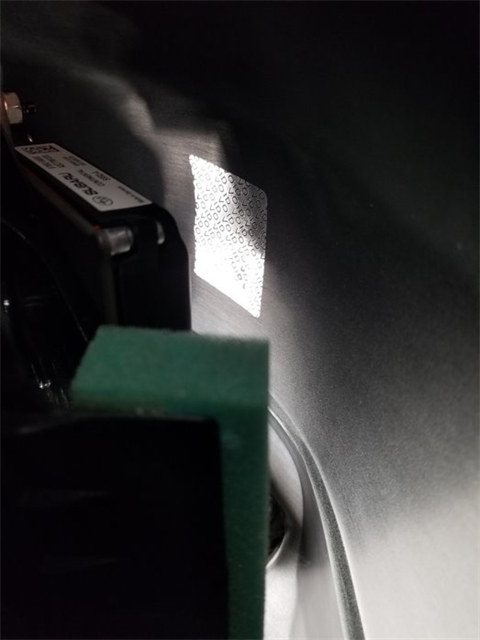 Knowing that the radio waves emitted from these units can read through less dense materials like bumper covers, it seemed a little odd that a sticker could cause such an immediate and consistent failure - until we reached in and attempted to peel the sticker off only to find a metallic VOID tamper sticker!