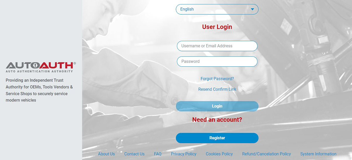 | 4. | Login to your autoauth.com account and follow the link to complete your registration as a “Service Center Signup / Independent Technician Signup”. |