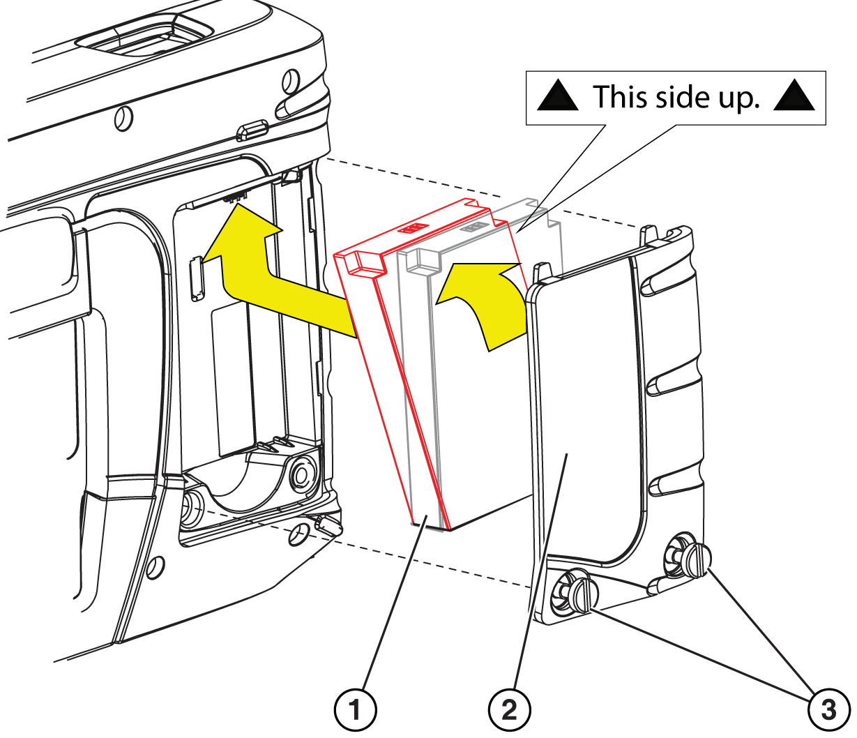 | 1. | Position the battery pack as shown below with the arrows facing up. |