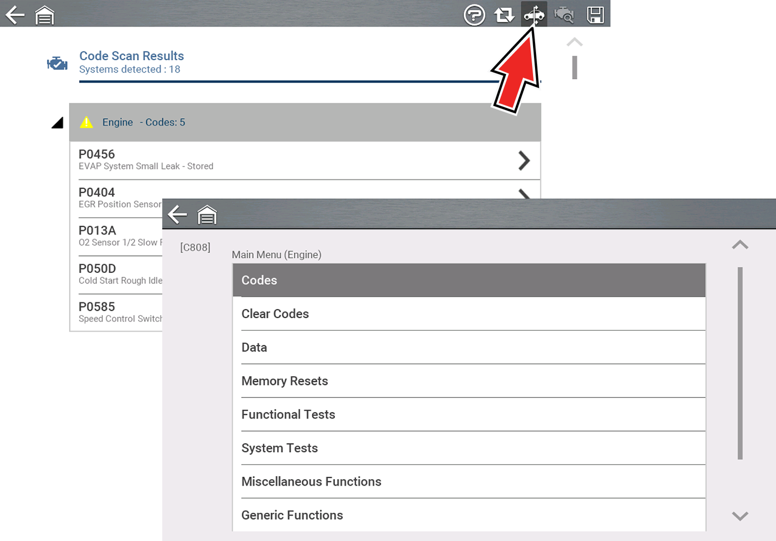 Home Screen: Scanner > (Identify Vehicle) > Code Scan (System Menu)