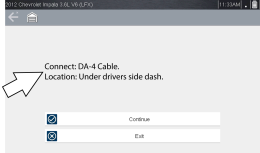 On-screen cable and adapter connection instructions may be provided while using the Scanner and OBD-II/EOBD functions. The instructions may also include the location of the vehicle DLC..