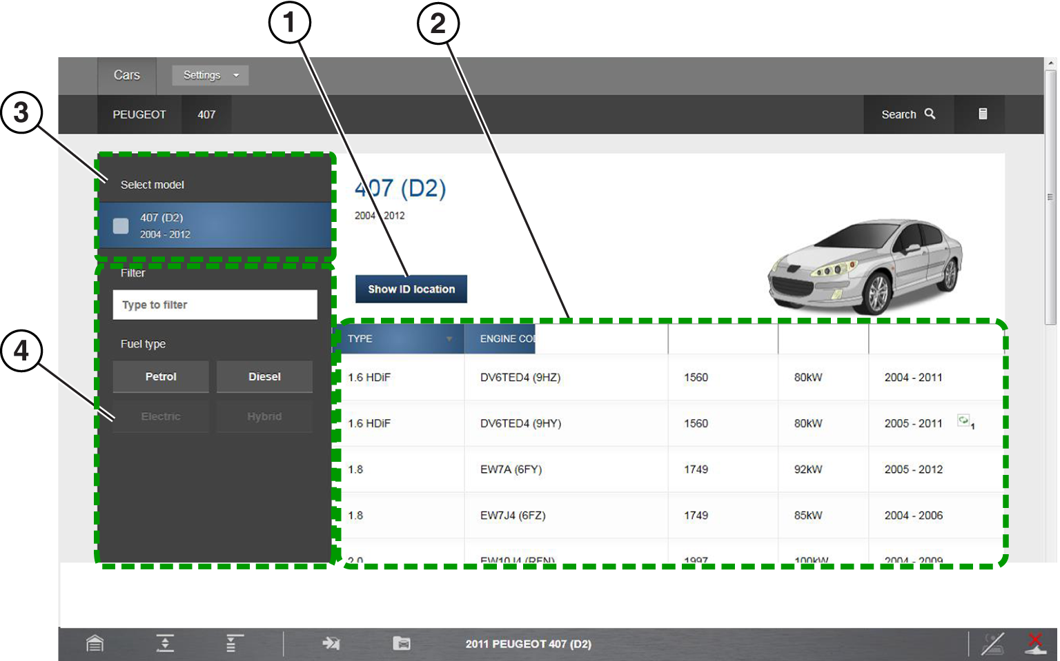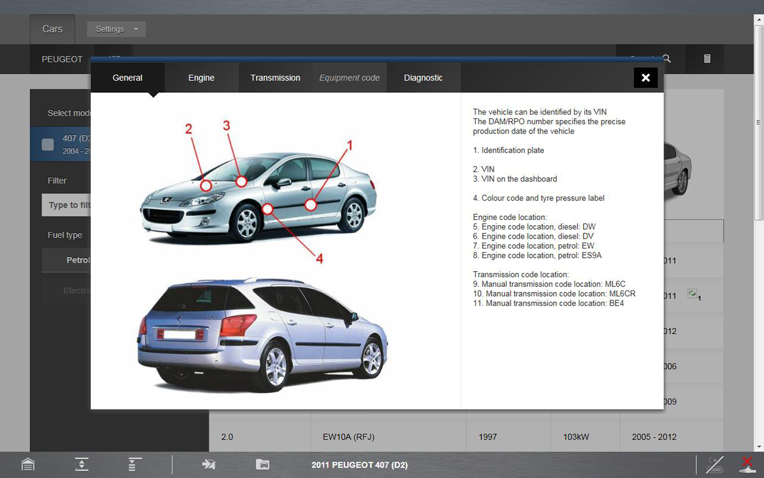 Vehicle identification is required to filter and display the specific technical information for the vehicle selected.