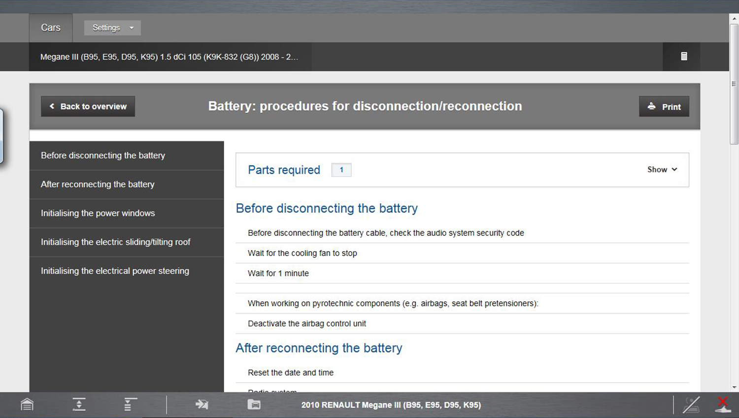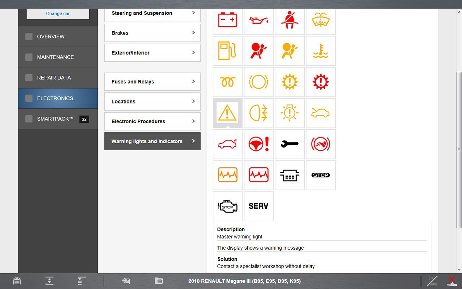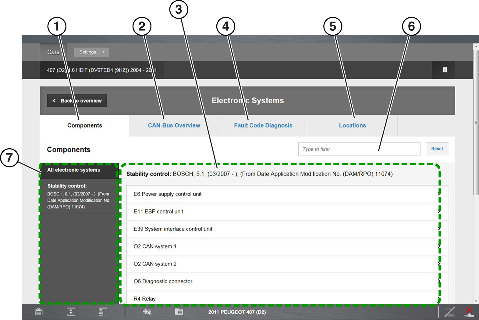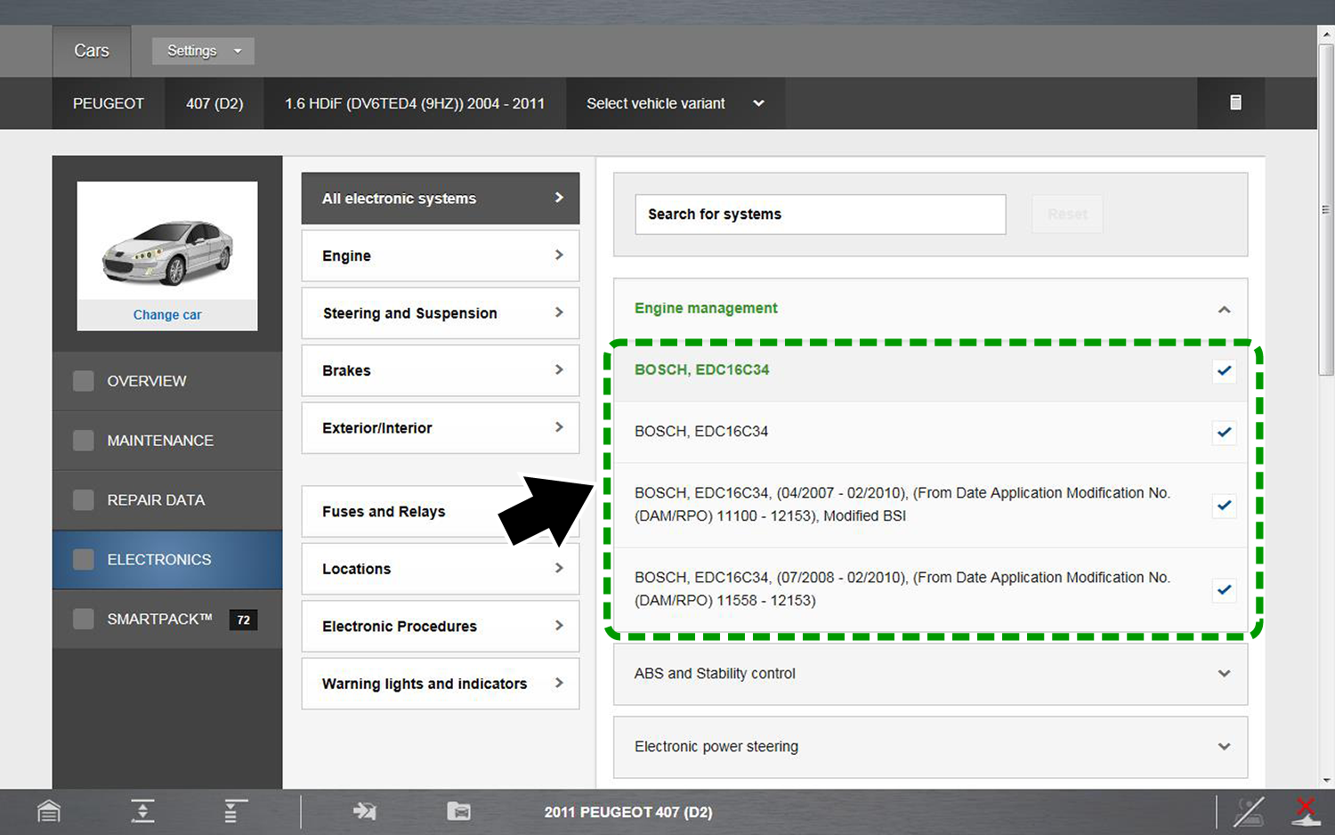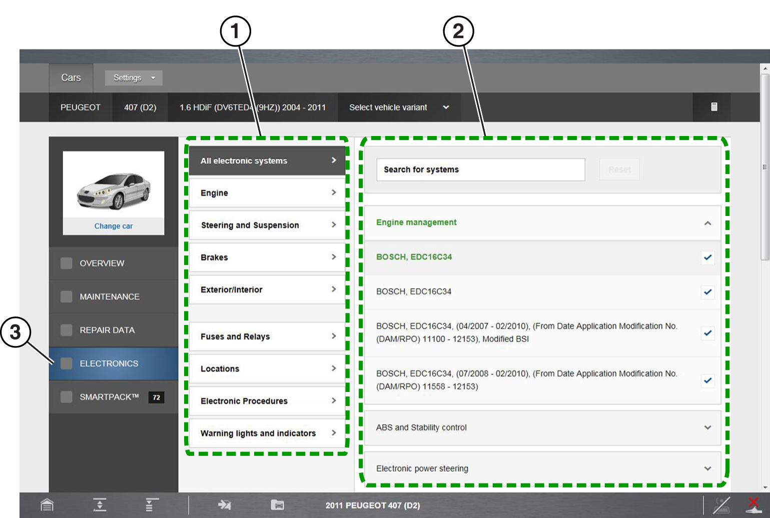 Electronic Systems can provide you with a summary of vehicle specific electronic systems diagnostic and reference data, by using selected filtering based on vehicle features and components. This ensures that the data results are correct for the specified vehicle.