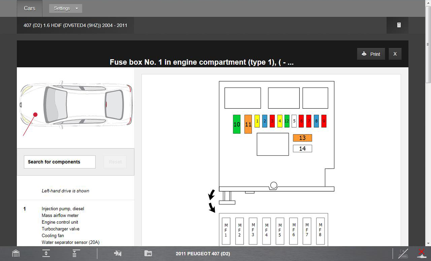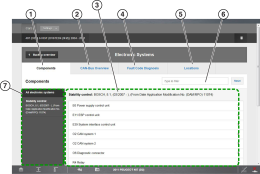 | ● | a selectable list of all the components used within all the vehicle systems To view specific component information, select a component from the list. |