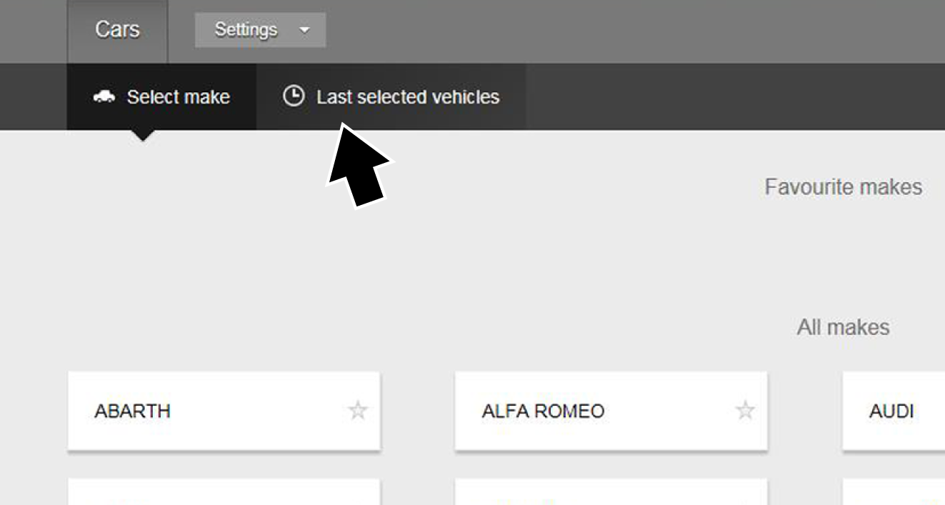 | 3. | Search—use the search function to quickly find and choose a specific vehicle manufacturer. |