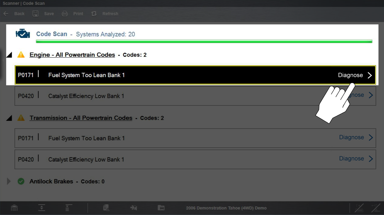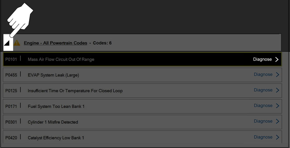 The Code Scan function is dependent upon the vehicle. Not all vehicles may support this function. See Selecting a Vehicle System.
