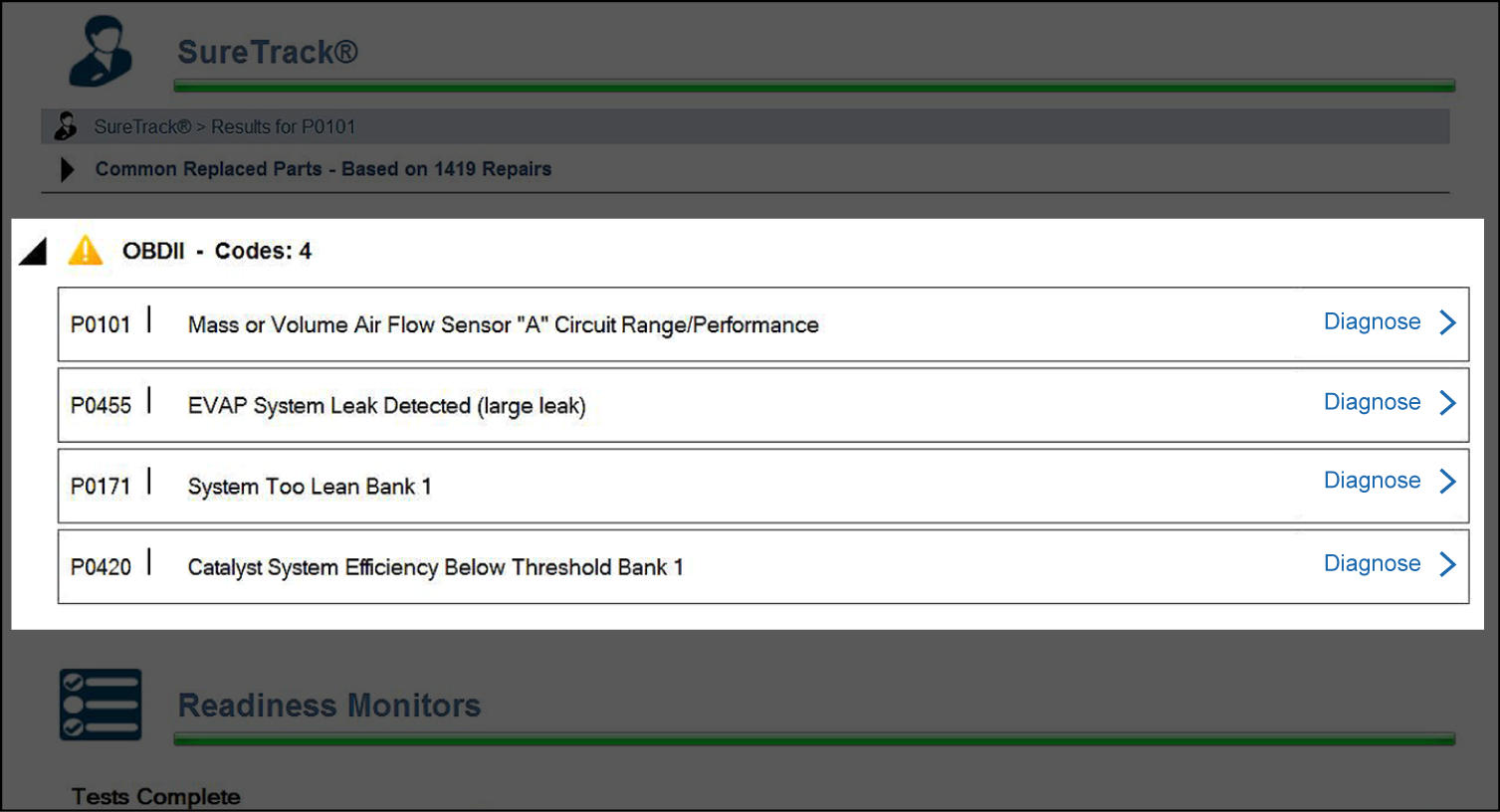 | ● | Readiness Monitor Test Status. At the end of the Code Scan Report, readiness monitor test results are displayed as “Tests Complete” or “Not Complete” . |
