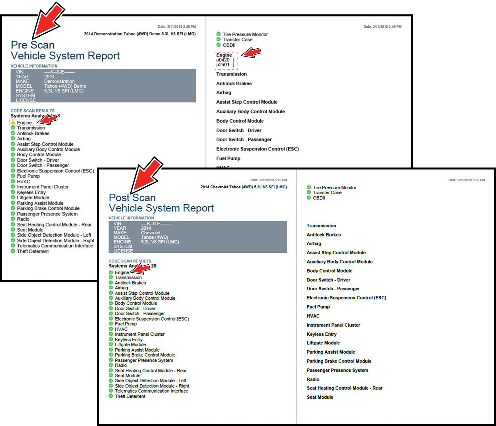 Performing pre and post scans also allows you to record in report format the pre-condition of the vehicle and compare the post scan after work is complete to confirm the repairs were completed properly.