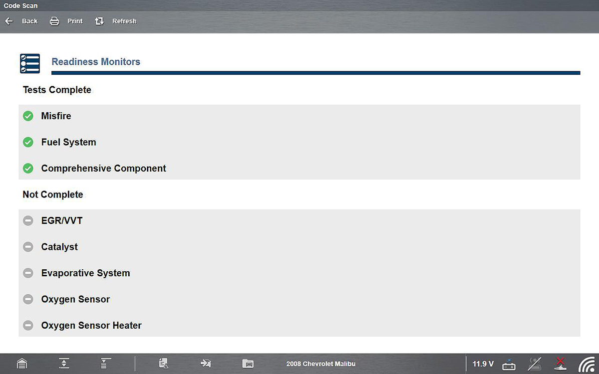 Monitors that are not supported by the vehicle are not displayed in Code Scan.