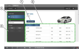 | 4. | Vehicle Identification Panel—Displays current vehicle model information in selectable tabs. Each vehicle category information tab can be selected to navigate back to that selection screen to make changes. |