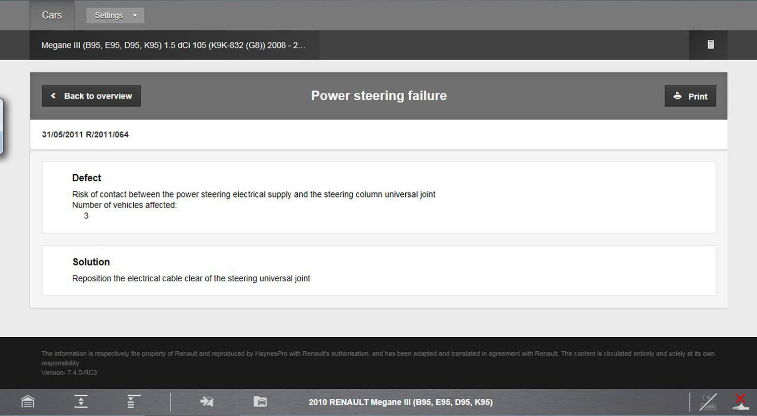 | ● | OEM recall and technical service bulletin information |