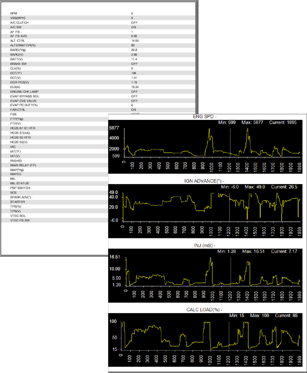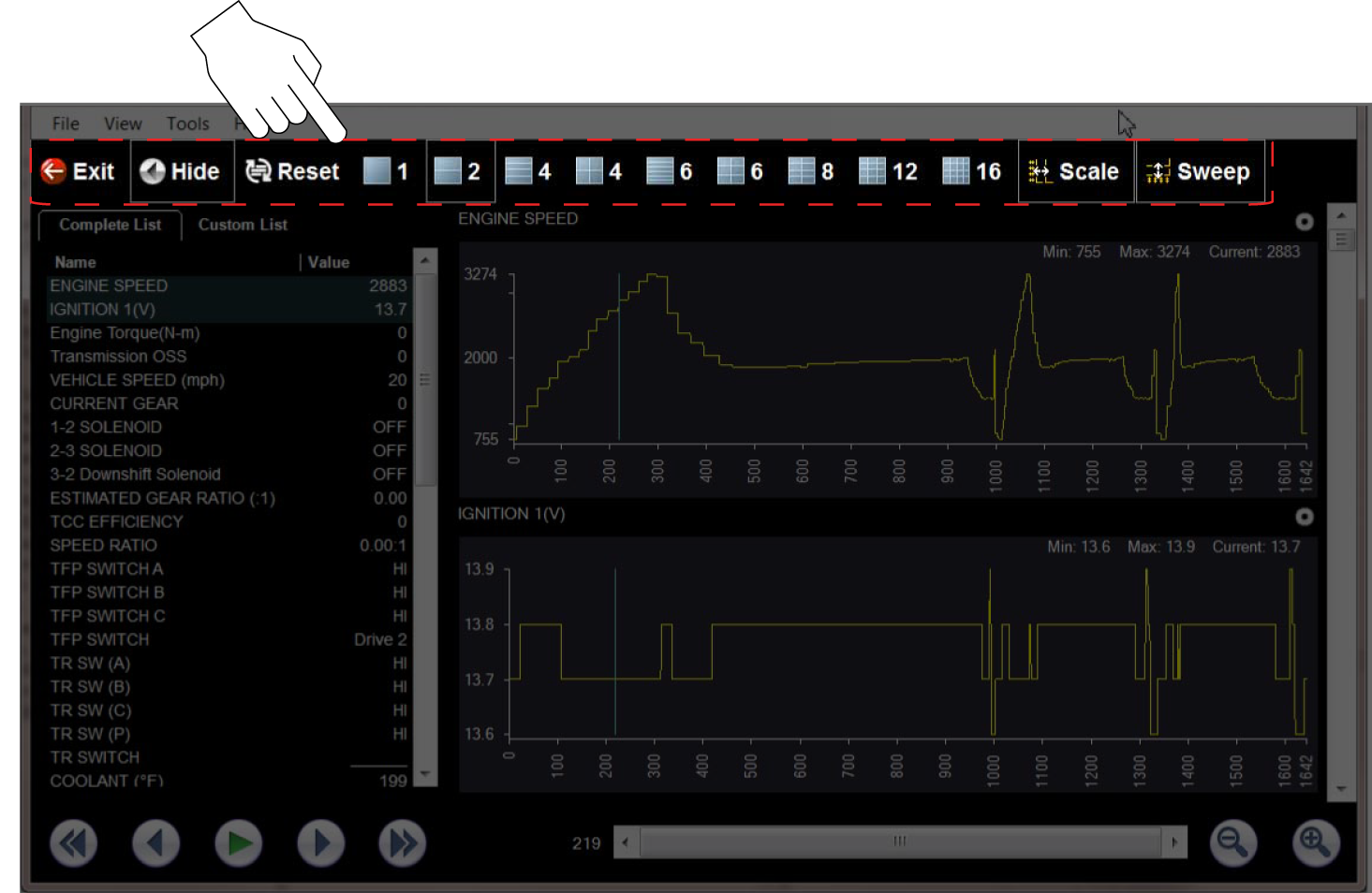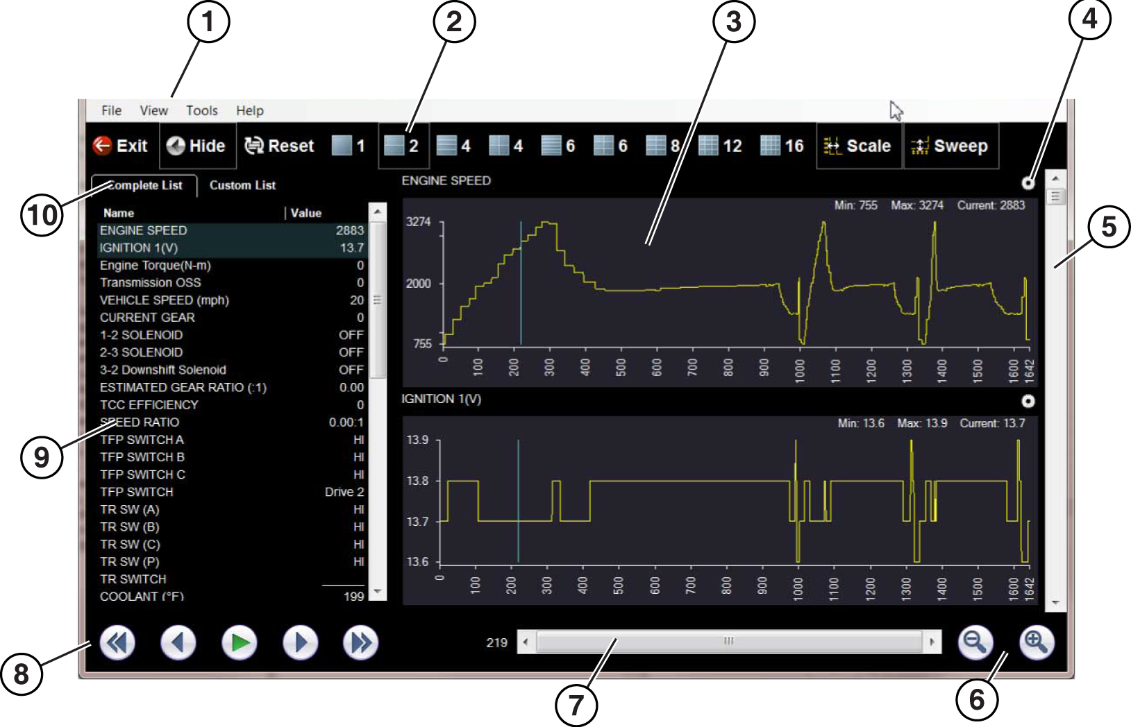 | ● | Hide PID List—toggles display between parameter text and graph views. |
