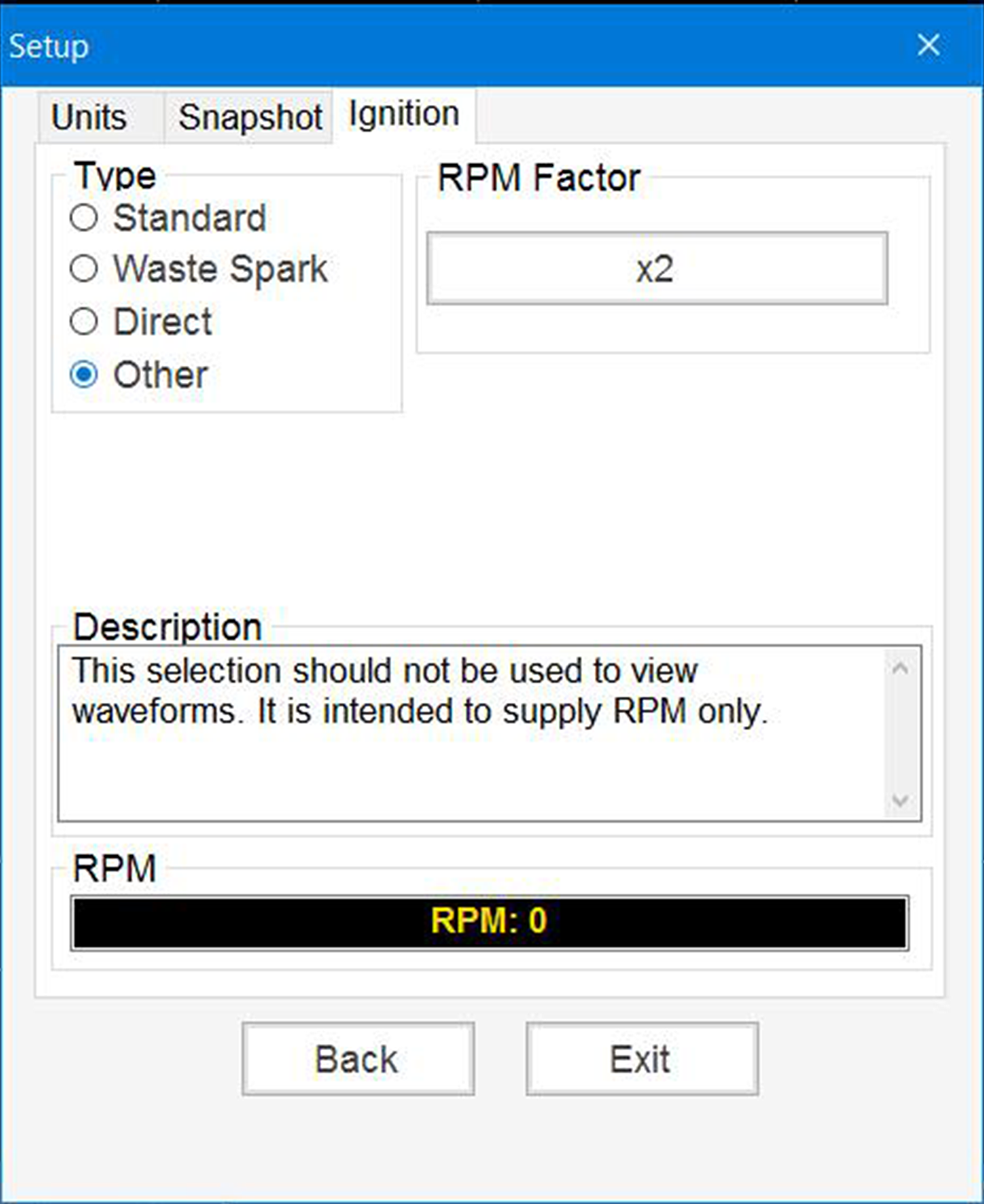 It is important that you choose the ignition system type first, as other settings are dependent on this selection.