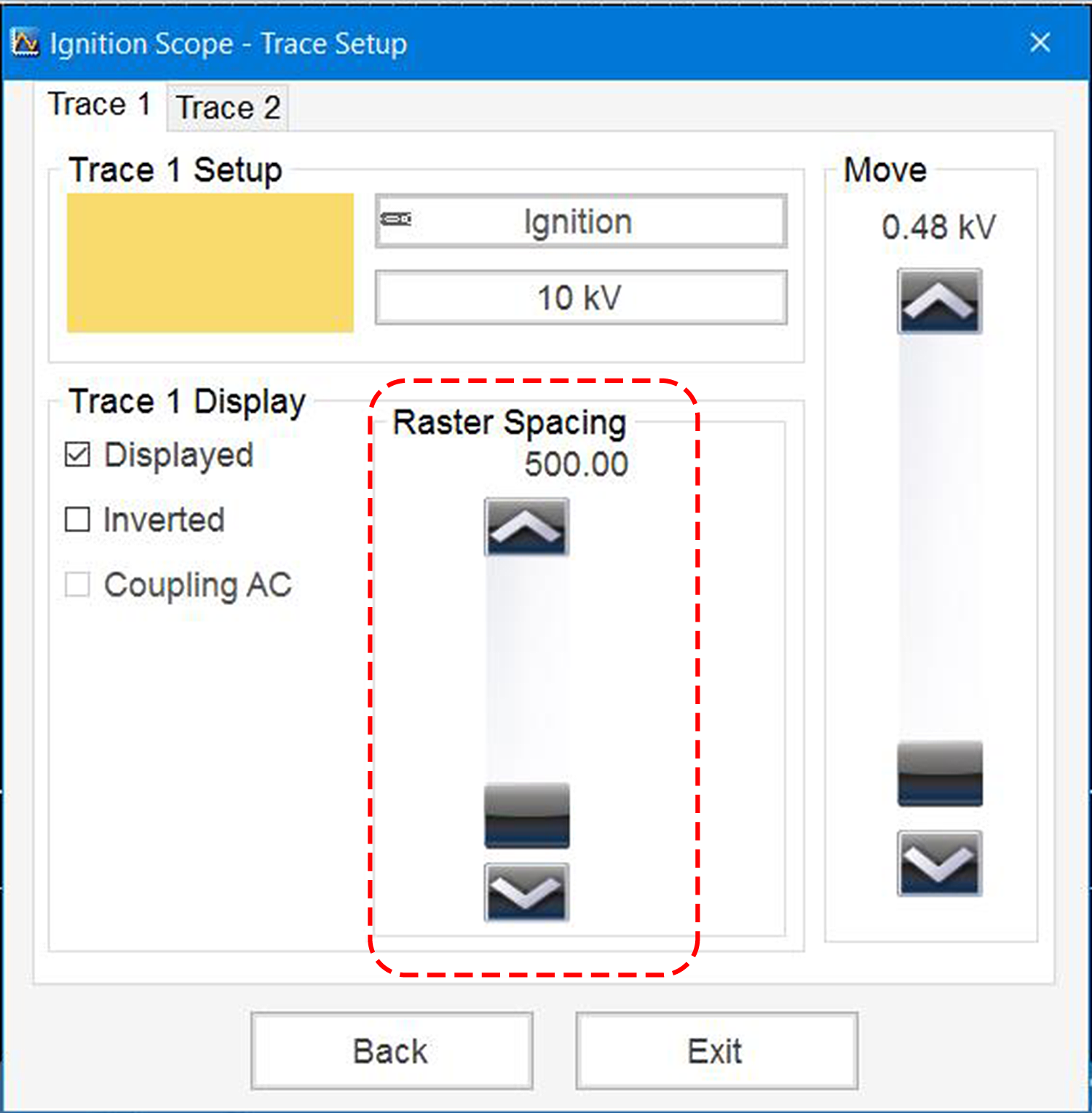 The sensitivity adjustment is primarily used to fine tune the ignition signal into a viewable pattern. The “Vertical” slider is used to raise or lower the cylinder firing detection sensitivity. Adjusting the sensitivity can be useful when: